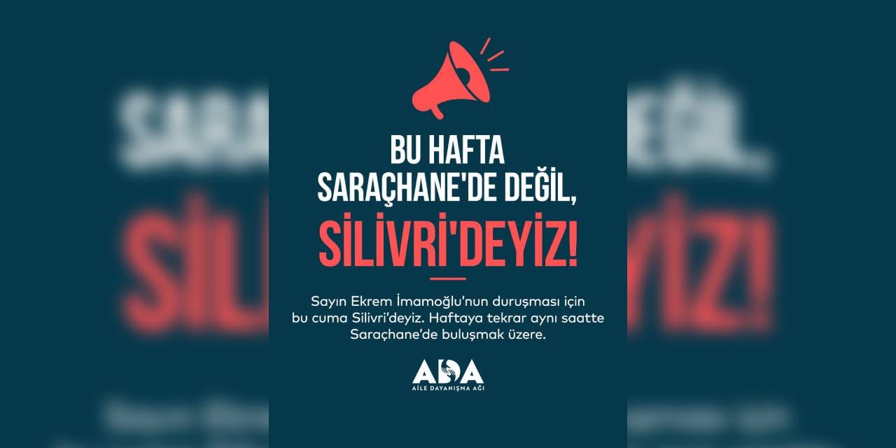 Aile Dayanışma Ağı, İmamoğlu’nun davasını takip etmek ve desteklerini sunmak adına yarınki buluşmalarında Silivri’de olacaklarını duyurdu. ADA, sonraki haftalarda ise “dayanışma buluşmalarını” tekrar Saraçhane’de gerçekleştireceklerini belirtti.