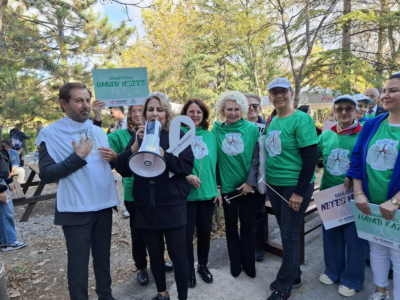 Üniversitenin Bağlıca yerleşkesinde “Nefes Al” sloganıyla gerçekleştirilen etkinliğe, akciğer kanseriyle mücadeleye dikkat çekmek ve toplumsal farkındalığı artırmak amacıyla, Başkent Üniversitesi Kurucusu Prof. Dr. Mehmet Haberal, Halk TV Sorumlu Müdürü ve programcısı Serhan Asker, Ankara Büyükşehir Belediye Başkanı Mansur Yavaş’ın eşi Nursen Yavaş ve CHP TBMM Protokol Müdürü Şükran Kütükçü ile akademisyenler, öğrenciler, hekimler, hastalar, hasta yakınları ve demokratik kitle örgütleri katıldı. Katılımcılar farkındalık yürüyüşü ve nefes egzersizleri yaptı.