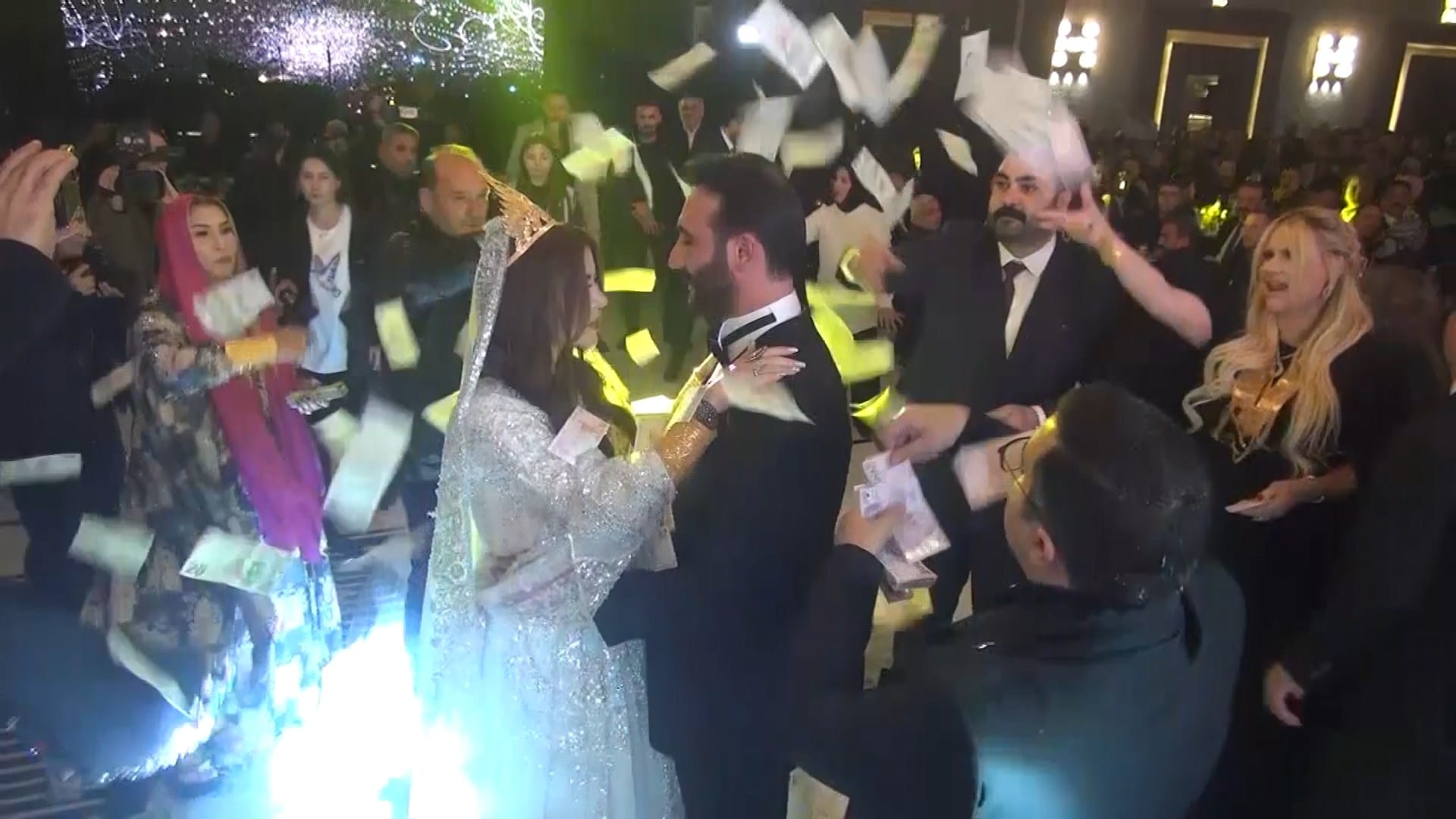 Davetliler, gelin ve damadın etrafında toplanarak tomar tomar para saçtı. Toplanan paralar görevliler tarafından sandıklara konuldu.